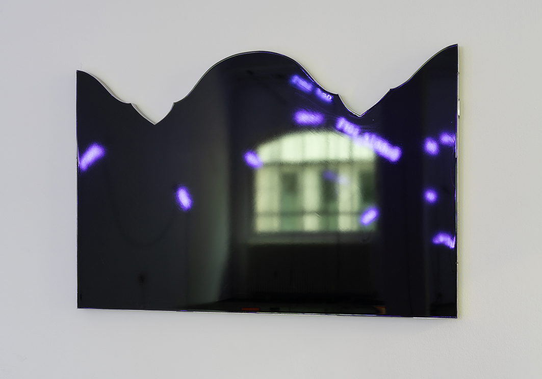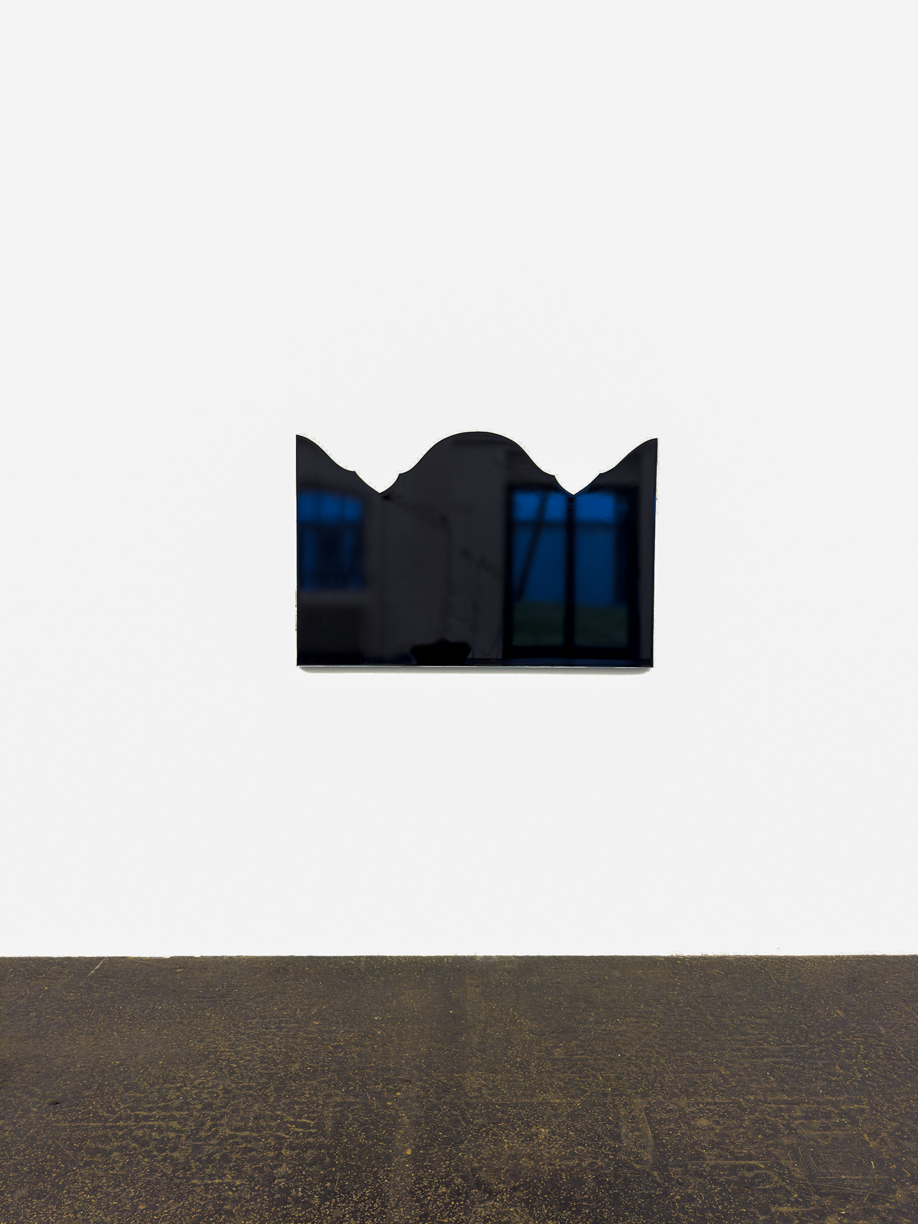 Retibel is a series of works that takes the historical retable as a reference point and translates it into a digital altar. The works consist of flat panels with high-gloss black surfaces reminiscent of inactive displays. They remain empty and thus refer to a latent pictoriality that is not realized.
